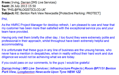 "...I am pleased to see and hear that my customer has been more than satisfied with the exceptional service you and your team have provided."
